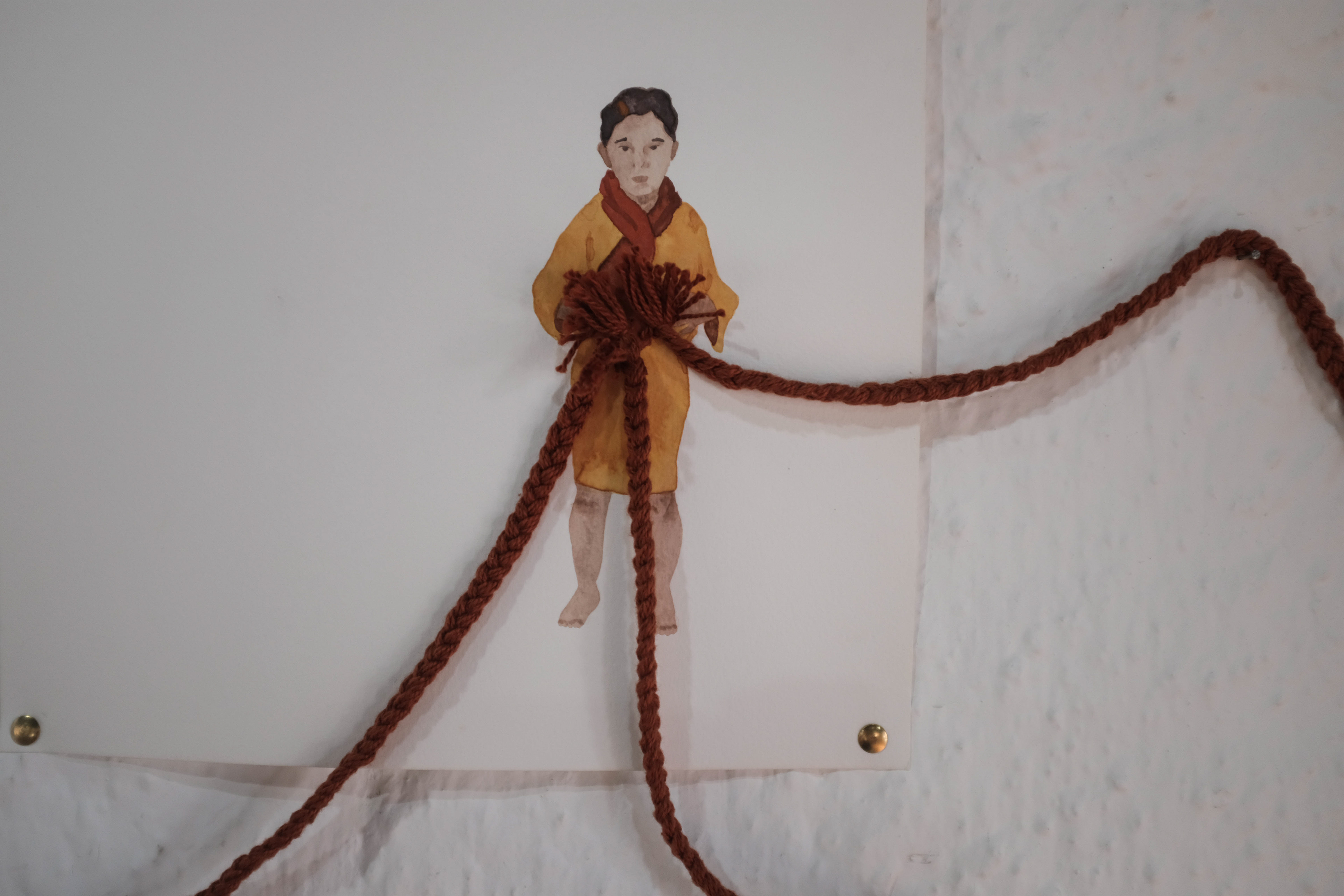 Balança de pesar pedras preciosas, 2022. Aquarela sobre papel e linha de algodão.
